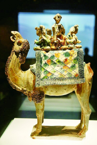 唐三彩載樂駝俑,現藏于陜西歷史博物館。
