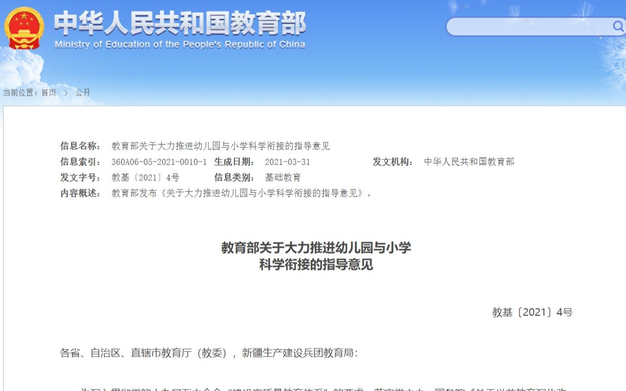 近日,教育部印發(fā)了《關(guān)于大力推進(jìn)幼兒園與小學(xué)科學(xué)銜接的指導(dǎo)意見(jiàn)》,部署推進(jìn)幼小銜接工作的時(shí)間表、任務(wù)單。《指導(dǎo)意見(jiàn)》中明確規(guī)定,校外培訓(xùn)機(jī)構(gòu)不得對(duì)學(xué)前兒童違規(guī)進(jìn)行培訓(xùn)。