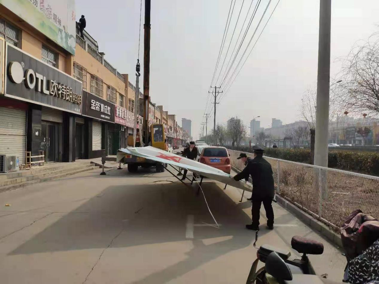 活動中,武邑縣住建局城管大隊工作人員對縣城區內新華街、騰達大街、建設路、寧武路等街道樓頂廣告、樓頂字、樓頂板等進行統計摸底,建立檔案,并下達《責令(限期)改正通知書》。由于樓頂字所處位置較高,字體體積大,為確保市民安全以及不影響商家正常營業,在樓頂字的拆除過程中,住建局城管大隊特地選擇在人流量較少的時間段展開作業。截至目前,城管大隊已對4家商戶樓頂廣告進行了拆除。