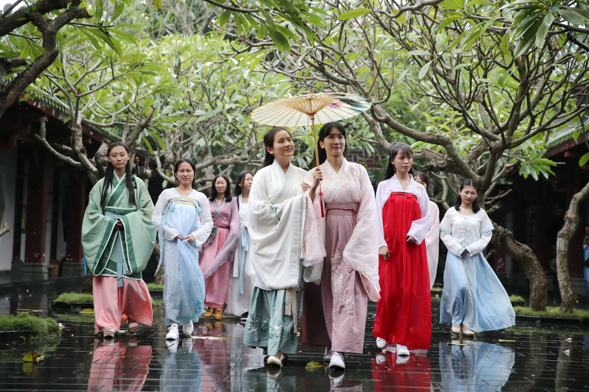 如今,無論是在人來人往的商業(yè)區(qū)還是書聲瑯瑯的校園,都能看到漢服的身影,甚至一些人開始在日常生活中穿著漢服。