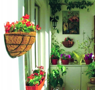 懸掛式花架。半封閉的陽臺可以朝內掛上花箱、花籃等懸掛式花架,簡單方便,適合種些喜光的中小型花。