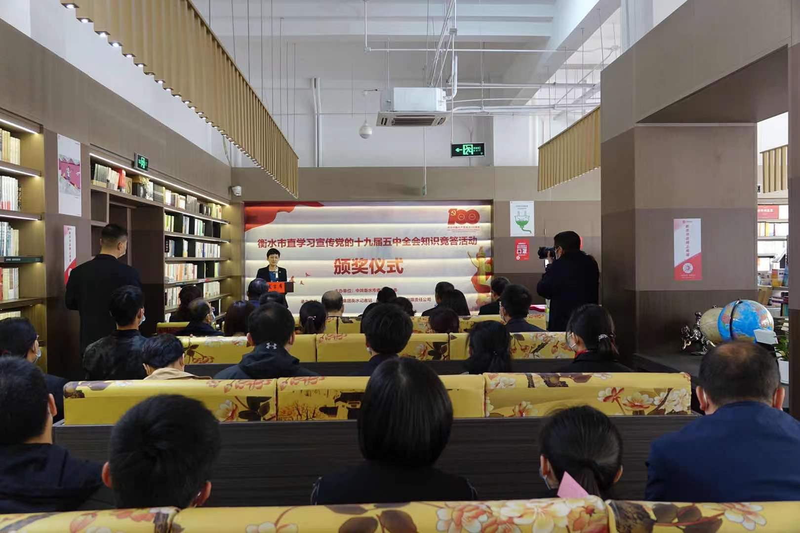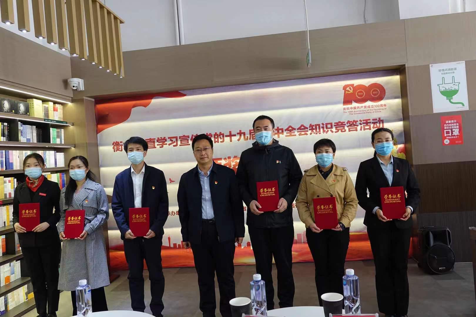 為深入學習、廣泛宣傳貫徹黨的十九屆五中全會精神,在市直干部職工中進一步掀起學習貫徹十九屆五中全會精神新高潮,衡水市委市直工委與長城新媒體衡水記者站、衡水市新華書店有限責任公司聯合開展了學習黨的十九屆五中全會線上知識競答活動。為適應年初新冠肺炎疫情防控形式要求,此次活動運用新媒體平臺創新組織形式,以更加廣泛、及時、高效地宣傳黨的十九屆五中全會精神,鞏固學習成果。從1月1日開始為期一個月的活動期間內,市直近萬名干部職工踴躍參與,并吸引了大量市外網民參與競答,最終由大數據計算產生衡水銀行等10個“優秀組織單位”和衡豐公司李興星等100名“答題能手”。