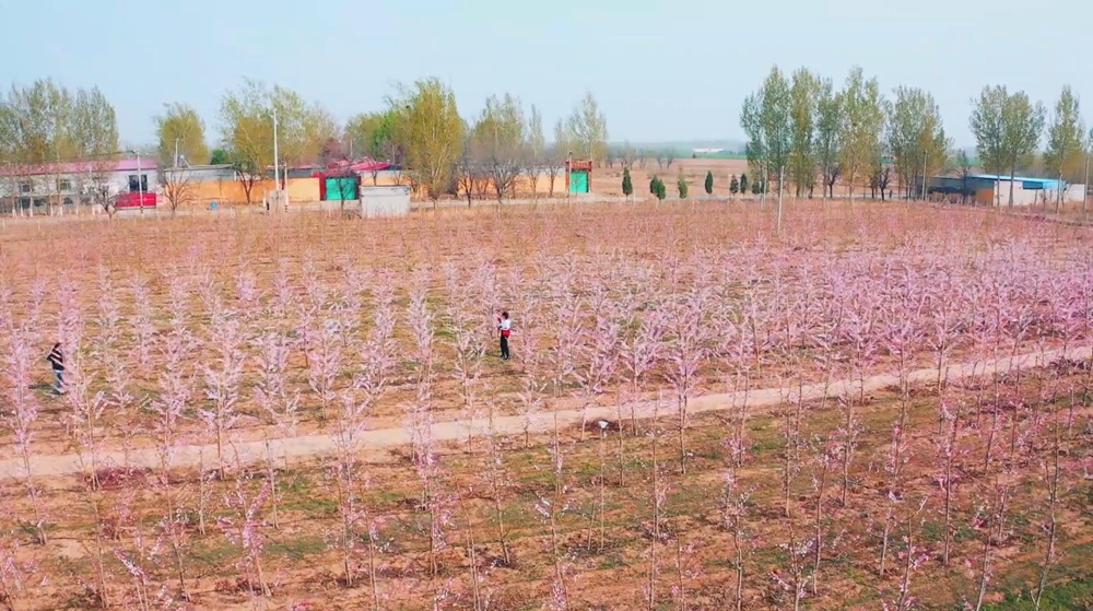 桃園中,工人正加緊疏花。桃園負責人李偉躍、李大兵、李公都是林東村地地道道的農(nóng)民,2019年,他們在村“兩委”的幫助下,流轉(zhuǎn)土地170余畝,栽種了蟠桃、黃桃等5個品種的桃樹共計18000余株。經(jīng)過精心管護,2021年將迎來首個豐產(chǎn)期。石家莊、滄州、天津、北京等地的收購商慕名來到果園考察,并簽下訂單。
