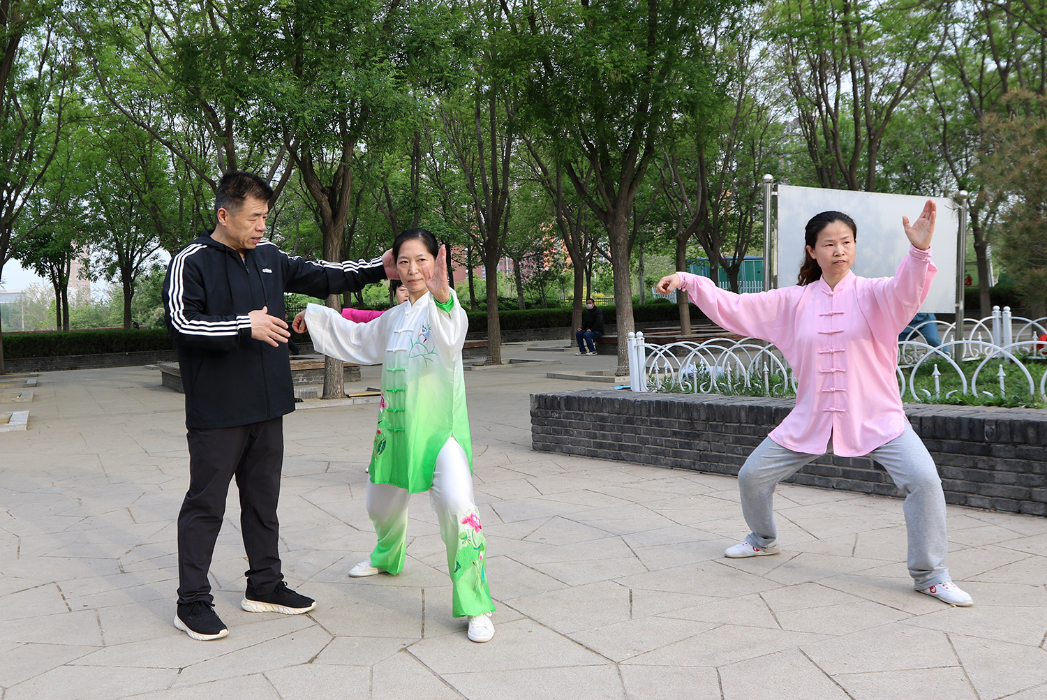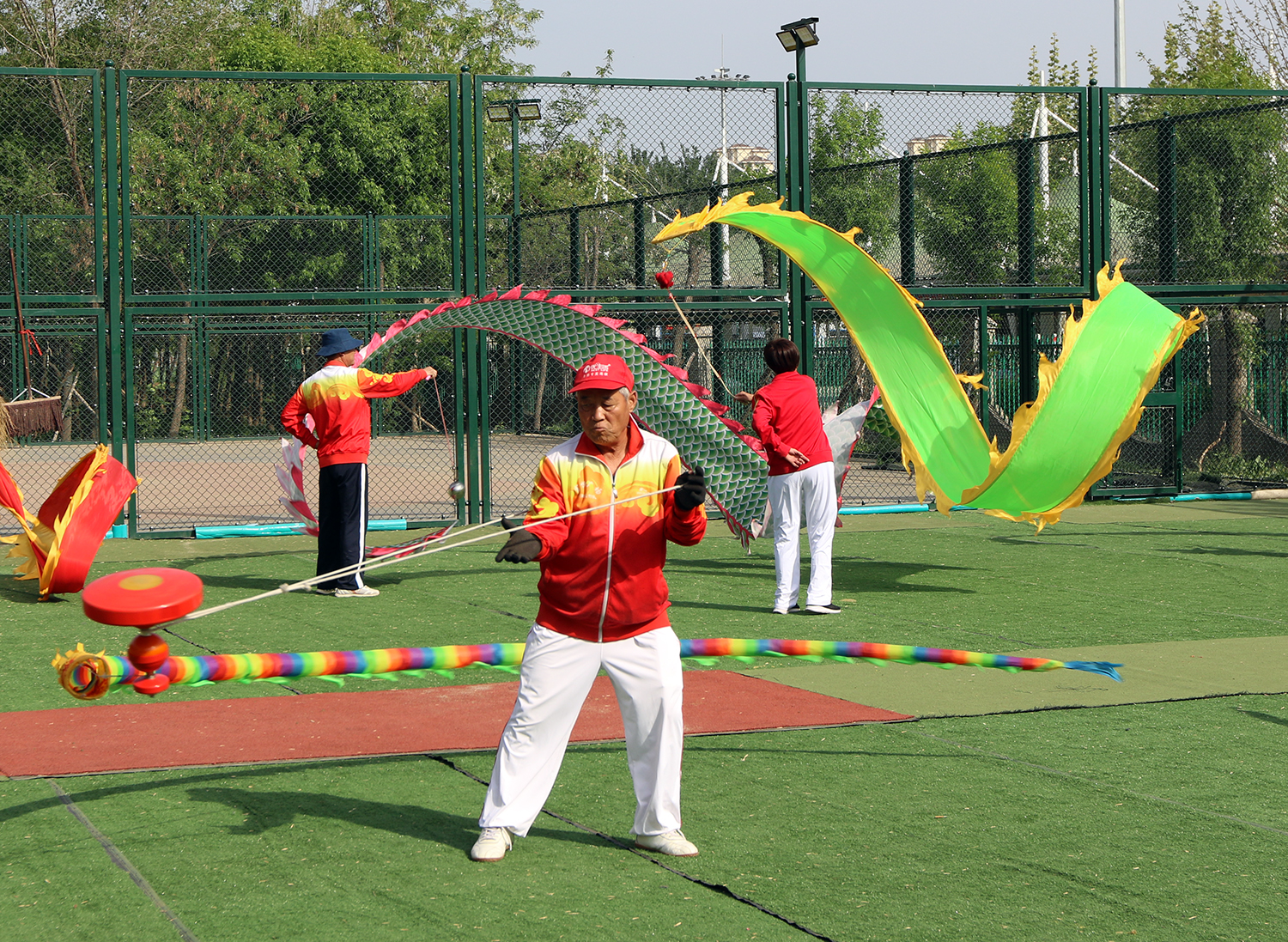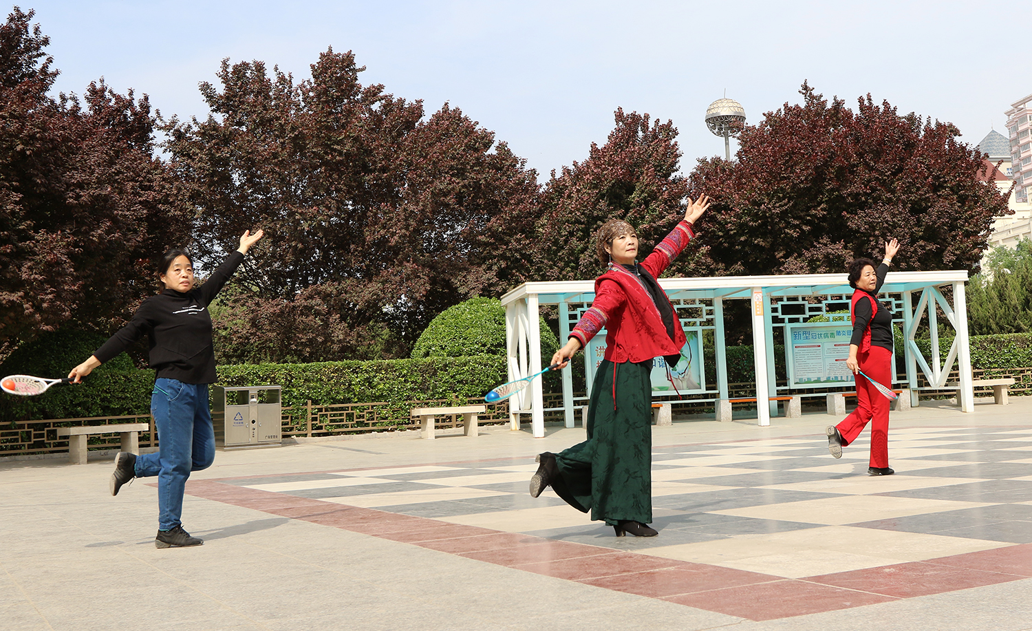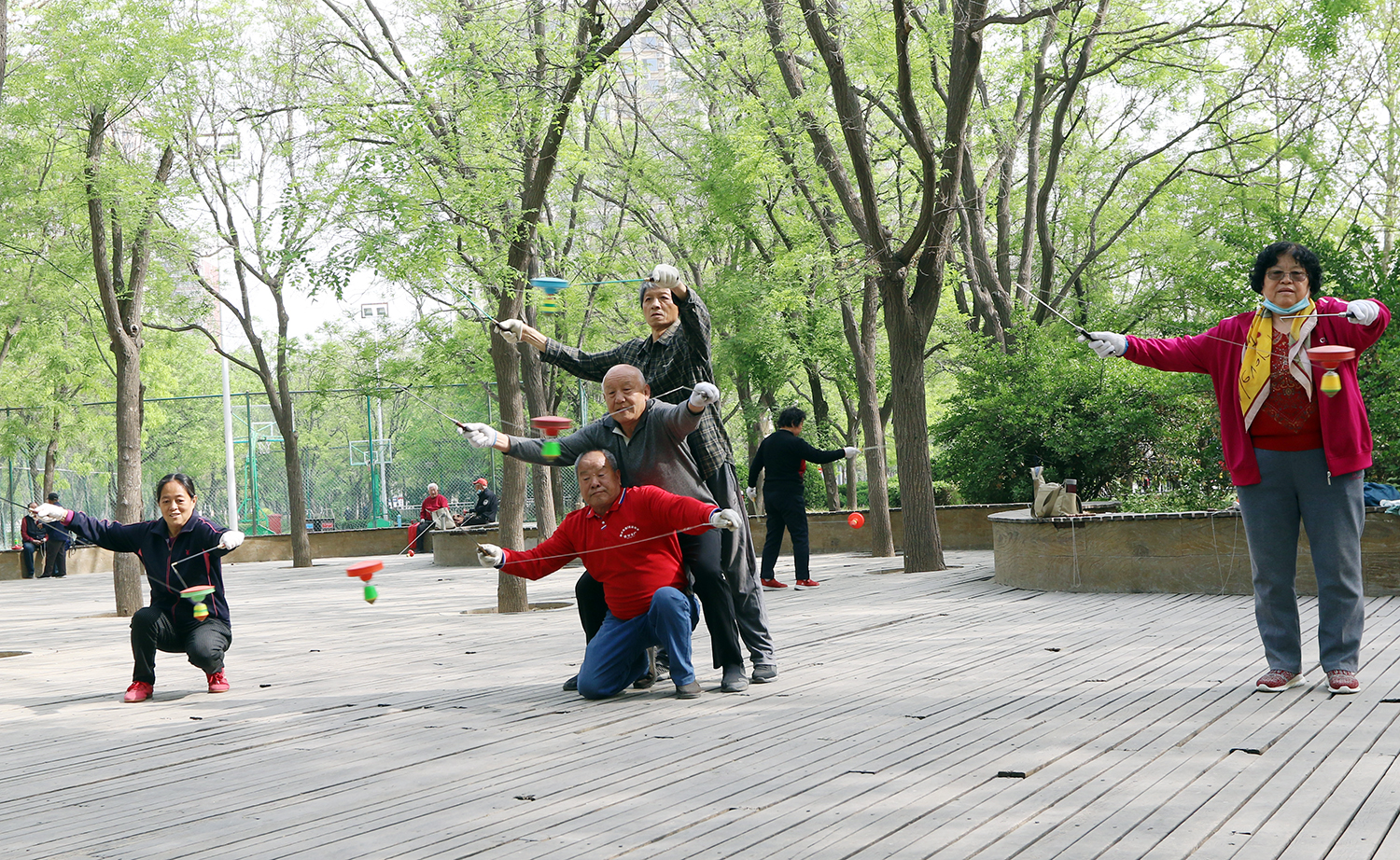中華南大街滏陽河南岸的籠式空竹場內市民在進行“抖空竹”運動。