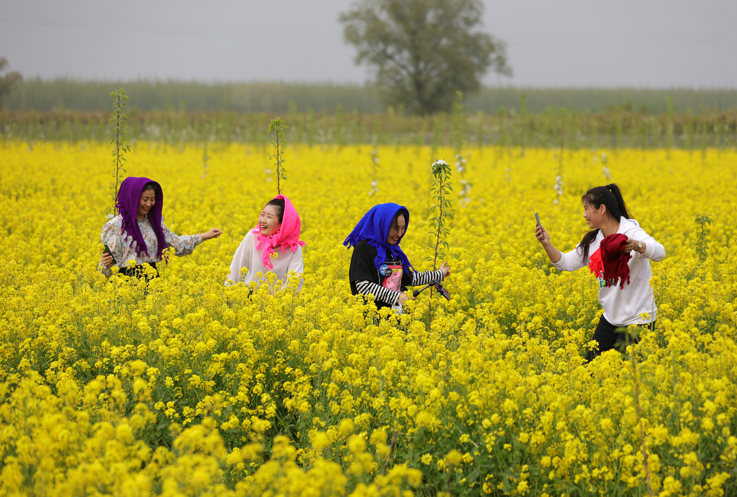 雪白的梨花尚未褪盡,黃燦燦的油菜花已在風中招搖。走進阜城縣霞口鎮劉老人村,一派田園風光讓人心醉。整齊的屋舍,寬敞的街道,花香濃郁的廣場,一望無際的梨園,在春日里顯露出勃勃生機。