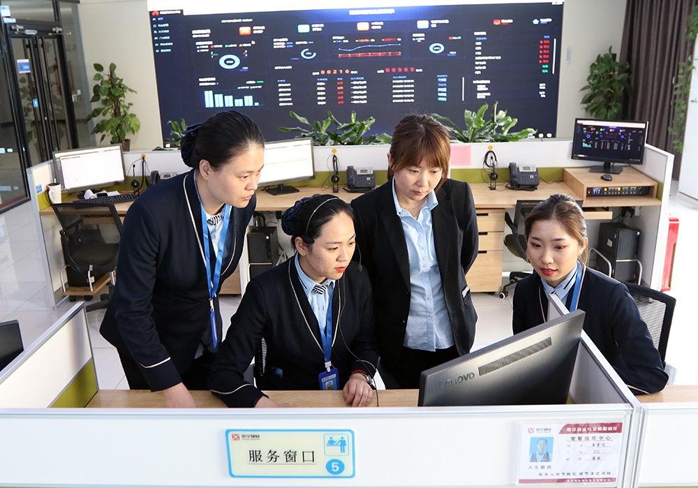 在市區麗景福苑小區物業,工作人員正在交流討論開啟“智慧平安社區平臺”,加入智慧平安社區行列后,物業服務的改進方法和途徑。