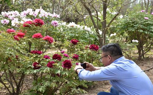 游客在牡丹園賞花拍照。齊紅雨 攝