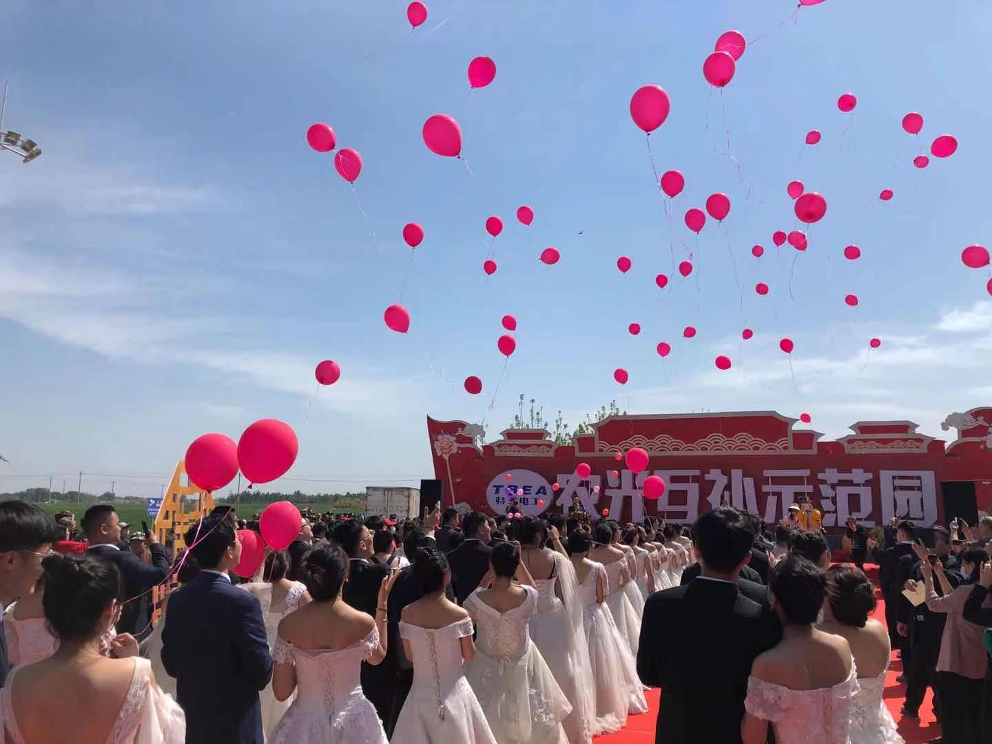 儀式上,新人代表向全市廣大青年朋友們發出了婚事簡辦樹新風的倡議;百位新人對愛人深情告白,并集體宣誓;區愛心公益人士為新人代表頒發結婚證,祝福新人們喜結良緣,百年好合。“參加這樣的集體婚禮非常有意義,終身難忘。”現場新人紛紛表示。最后,在全場熱烈的掌聲、歡呼聲和祝福聲中,全體新人放飛了夢想氣球,也放飛了自己對于幸福美好生活的一份憧憬,整場集體婚禮氛圍達到最高潮……