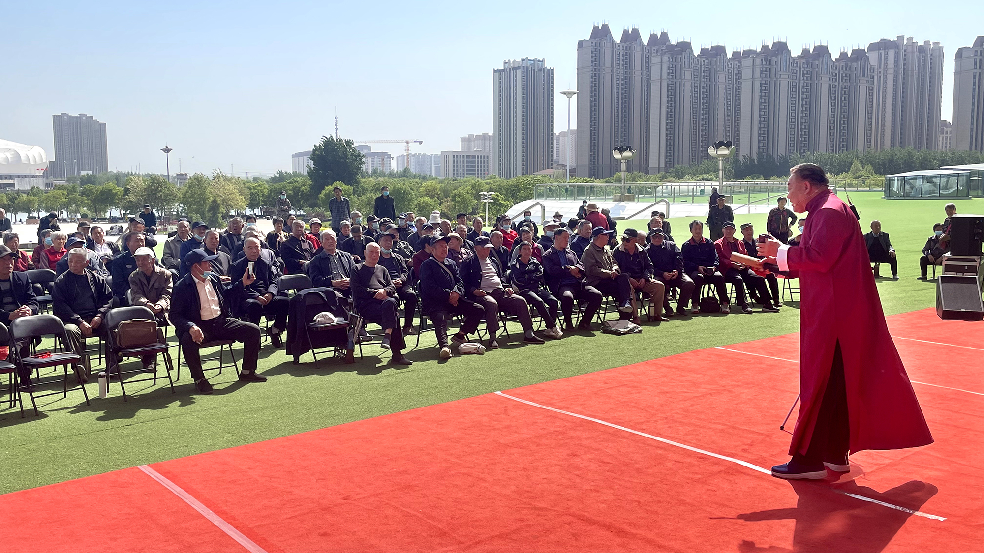 市松鼠曲藝社團尹庚林正表演快板《玲瓏塔》。