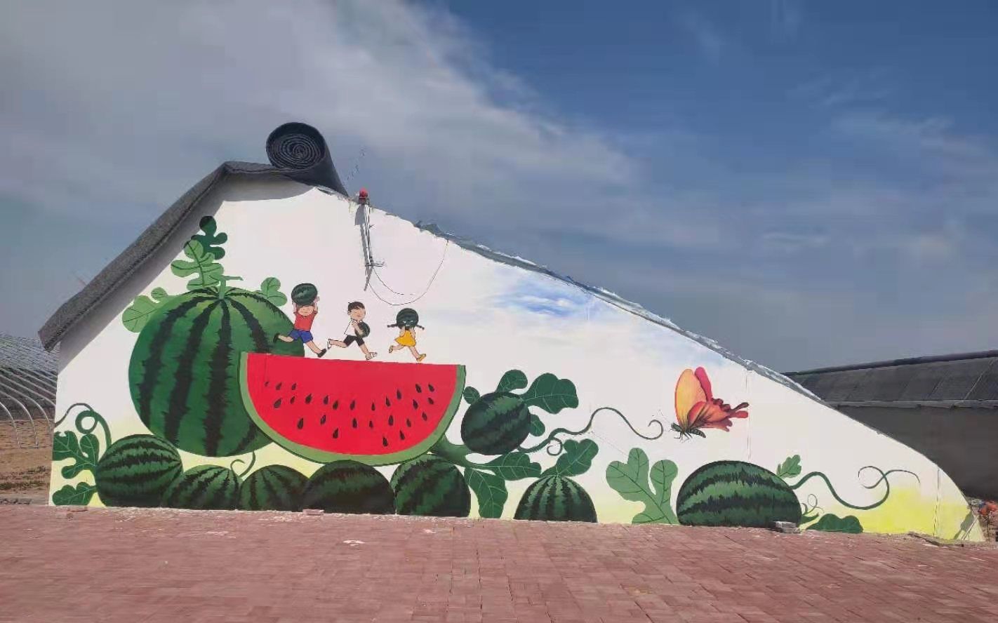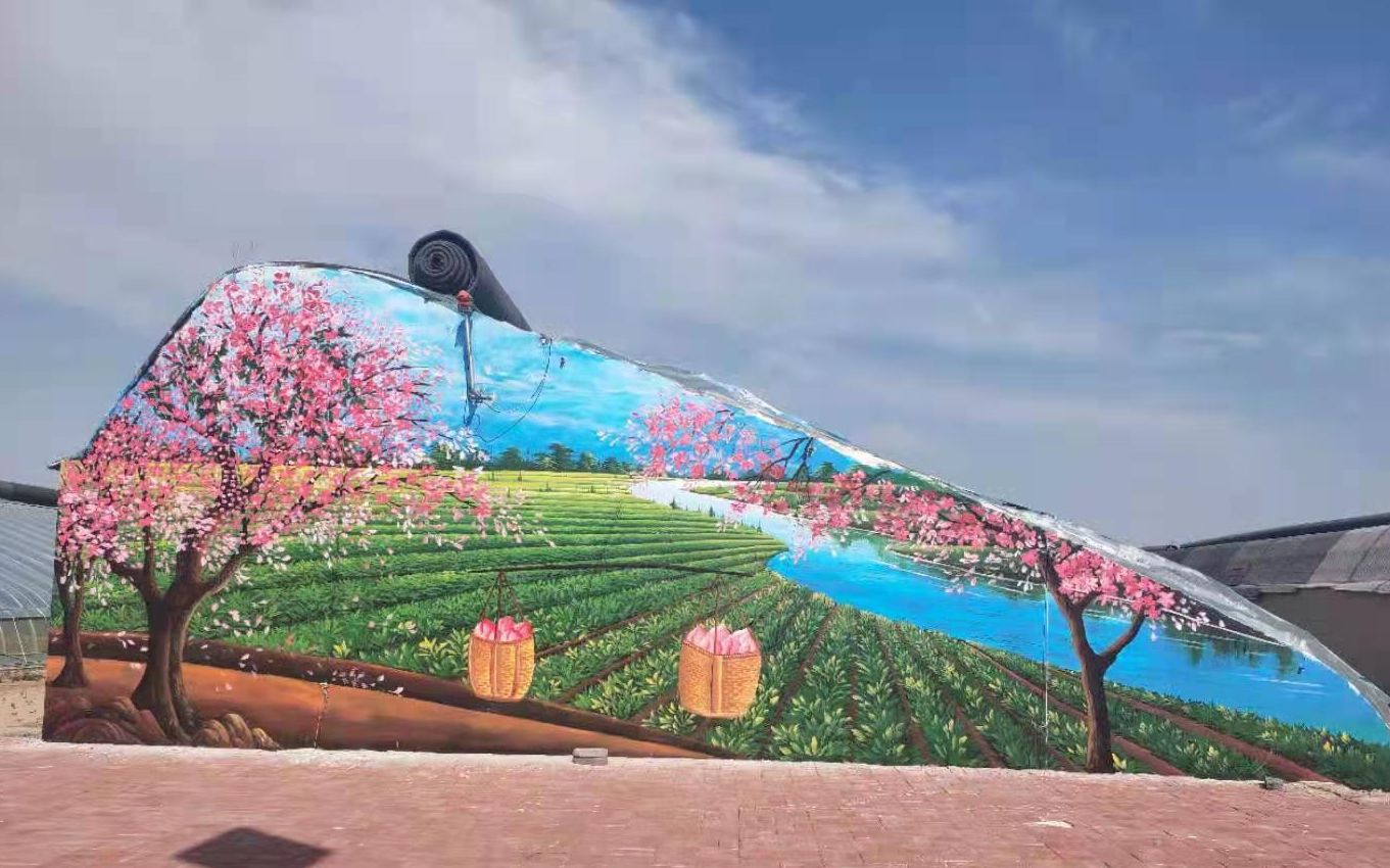 “五一”小長假,走進武邑縣審坡鎮賈寺院耕讀小鎮,一幅幅帶著田園氣息的大棚彩繪映入眼簾:碧綠的田野前,三兩棵杏樹繁花似錦、西瓜田里的豐收景象、紅彤彤的草莓從棚室探出頭……這些彩繪和蔚藍的天空交相輝映、相得益彰,扮靚了村莊的妝容,也給村民們帶來了美好的精神享受。