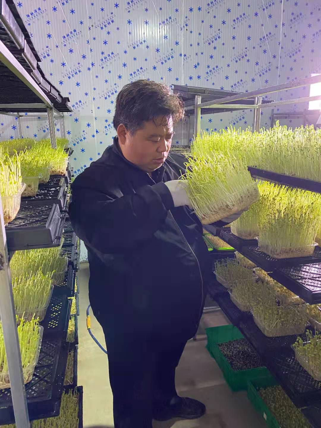 李治國(guó)是武邑縣韓莊國(guó)英家庭農(nóng)場(chǎng)負(fù)責(zé)人。2018年一次偶然機(jī)會(huì),李治國(guó)接觸到“芽苗菜”這個(gè)新事物,他心里一動(dòng):“占地少、空間利用率高,投資小,周期短,利潤(rùn)可觀,自己家里的幾間房正好做這個(gè)事情。”