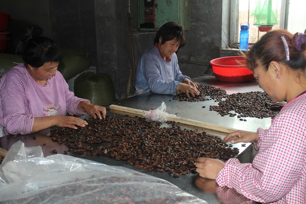 村民在故城縣茂豐土元養殖基地分揀土元。楊智華 攝