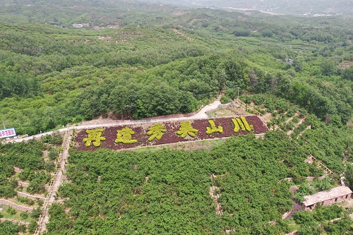身為林果技術員的郭海慶每次到果園勞作,總喜歡在生態旅游景區的觀光平臺駐足享受幾分鐘。層層疊疊的水平溝向外延伸,各色水果彰顯著前南峪人戰天斗地的昂揚精神和艱苦奮斗的不止腳步;不遠處用常青小柏樹栽植而成的“再造秀美山川”六個綠色大字格外醒目,濃縮著前南峪人尊重自然、生態優先,像保護眼睛一樣保護生態環境的持久實踐。