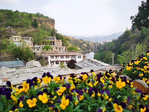 象外客棧位于信都區路羅鎮的小戈廖村,青石構建的房屋古香古色,被鮮花綠植裝扮得古樸而又清新。