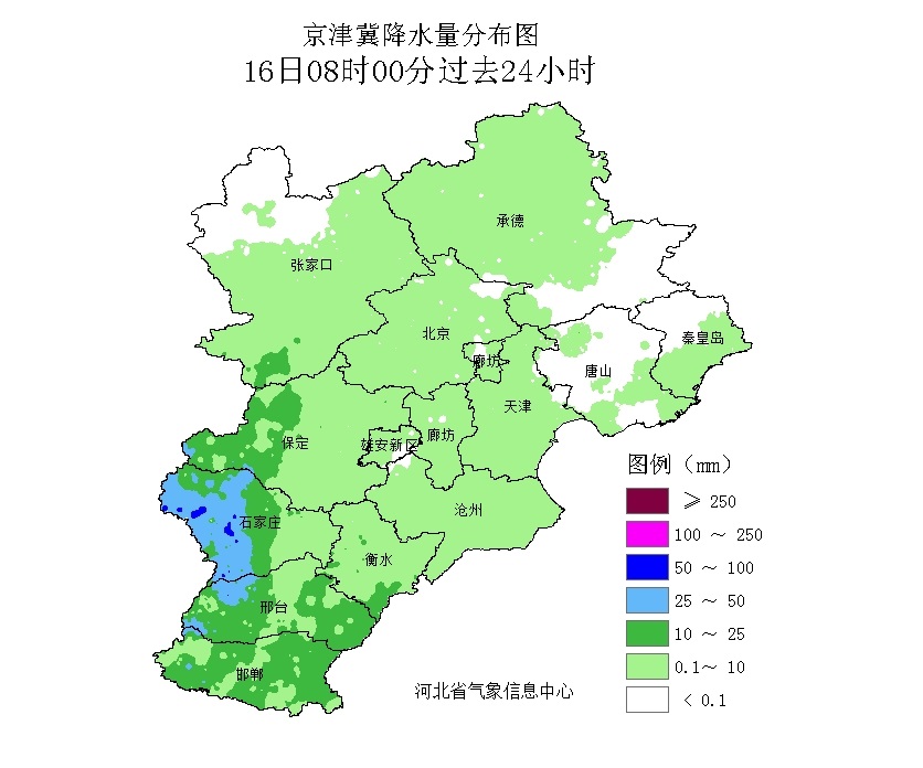針對剛剛過去的這場降雨,記者從衡水市氣象臺獲悉,15日12時至16日12時,該市出現降雨天氣,截至16日12時,有27個氣象站降水量在10毫米以上,最大為故城縣鄭口14.5毫米,其次為故城青罕14毫米,故城饒陽店13.5毫米,其余各站在10毫米以下,全市平均降水量6.2毫米,桃城區5.4—11.6毫米。市人影辦積極組織人影作業,共成功作業8點次,發射火箭彈32枚。