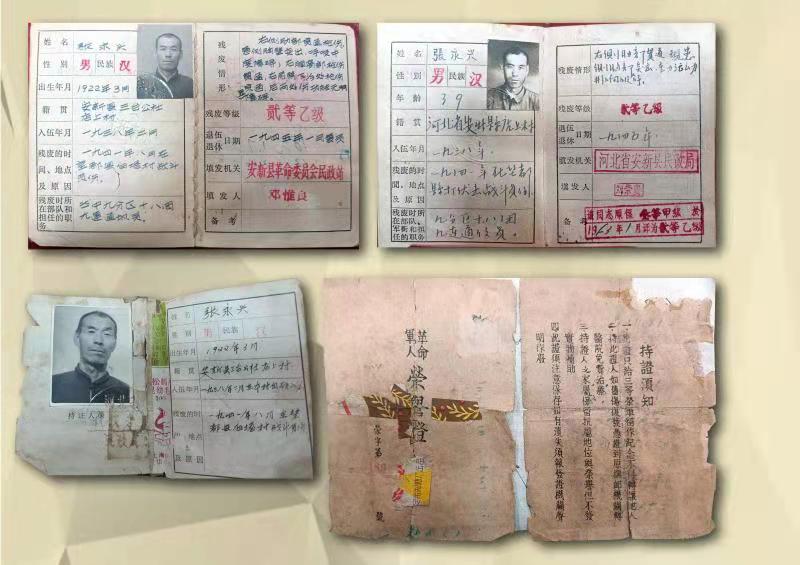 在安新縣退役軍人事務(wù)局,張永興的個(gè)人檔案仿若從歷史跳到今天:革命軍人榮譽(yù)證、革命殘廢軍人撫恤證、殘廢人員登記表……一份份泛黃破舊、字跡斑駁的證件與材料,拼湊出這位老八路的戎馬歲月——