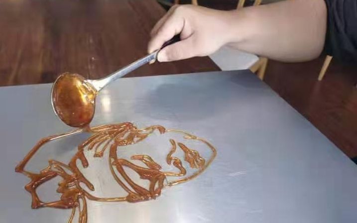 他舉例說,比如熬糖看似輕巧,但每一步都不容忽視。熬制時,糖水不停翻騰冒著氣泡,為了避免糖水粘鍋或者焦化,要用鐵勺不停進行攪動。細細熬制一會兒以后,糖漿會變得黏稠,直至熬到絲滑不斷,糖稀才算熬好了。