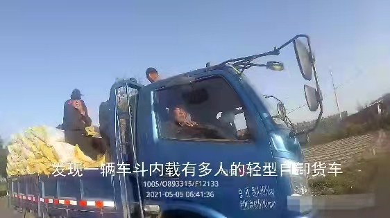當日6時40分許,故城交警大隊執勤民警巡邏至裘都大道路段時,發現一輛正由西向東行駛的輕型自卸貨車,車廂貨物上竟坐著好幾個人,存在嚴重交通安全隱患。民警見狀,立即示意其靠邊停車接受檢查。經查,該貨車違法拉載了5名務工人員。