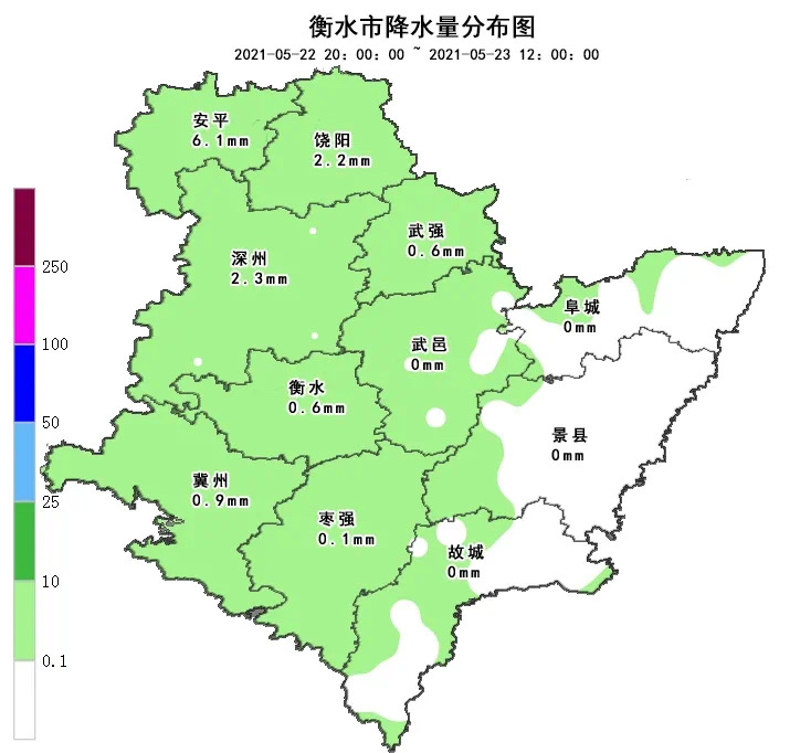 22日夜間到23日早晨,衡水的大部分地區(qū)迎來了降雨天氣,降雨量以小雨為主。衡水市氣象臺(tái)5月23日12時(shí)發(fā)布雨情信息:22日夜間我市大部地區(qū)出現(xiàn)降雨天氣,截至23日12時(shí),有7個(gè)氣象站降水量在5毫米以上,最大為深州市兵曹張村7.3毫米,另有83個(gè)氣象站降水量在5毫米以下,桃城區(qū)1.6到0.3毫米。