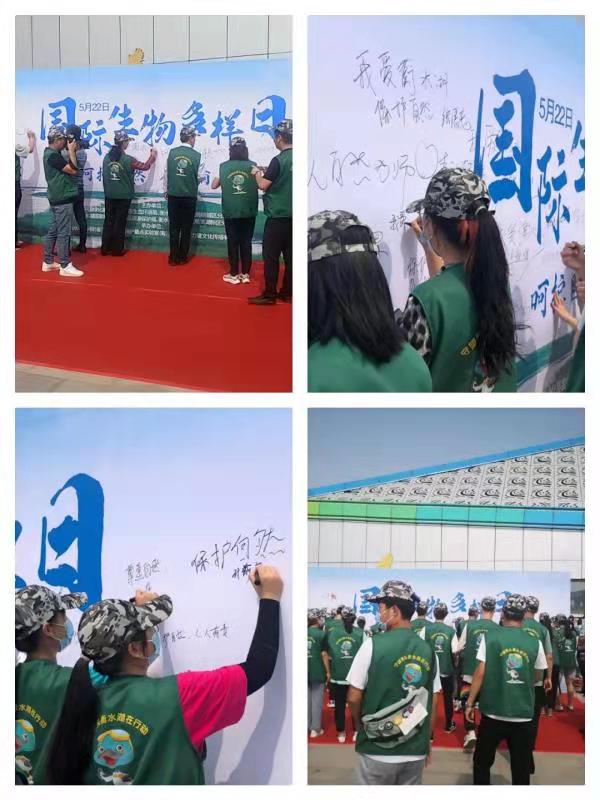 衡水市生態環境局桃城區分局、衡水市生態環境局濱湖新區分局、衡水湖國家級自然保護區資源保護局等部門工作人員,衡水學院老師及學生共200多人參加活動,并依次上臺在簽字布上簽字。