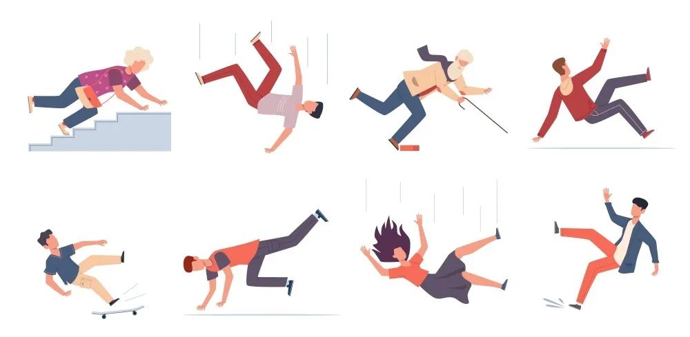 萬一跌倒,記住兩個推薦動作:1.拉扶住身邊的固定物;2.用手撐地,這是降低傷害的有效方法。