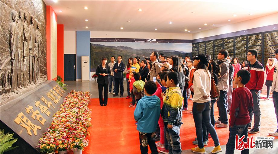 游客在沙石峪陳列館接受愛國主義教育。遵化市委宣傳部供圖