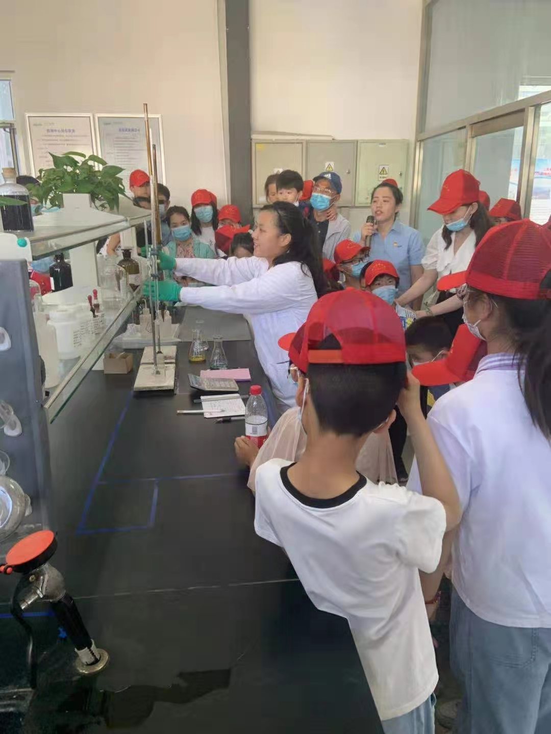 活動中,衡水睿韜環保技術有限公司的講解員為大家講解了世界環境的發展歷程、我國環保事業發展歷程、工業危險廢物的界定、危險廢物處置工藝及流程等知識,播放了環保宣傳片《讓中國更美麗》、《環保人之歌》。隨后,帶領大家進入廠區,實地參觀了解危險廢物處置的全過程,并在實驗室為小朋友們做了檢測水中總堿度含量的實驗。看著容器中的水由透明變為藍色,再變為淡粉色,小朋友們發出陣陣驚嘆聲。在參觀完畢后,主辦方為小朋友們發放了白色T恤和油畫棒,讓孩子們將自己心中的環保意義畫出來。