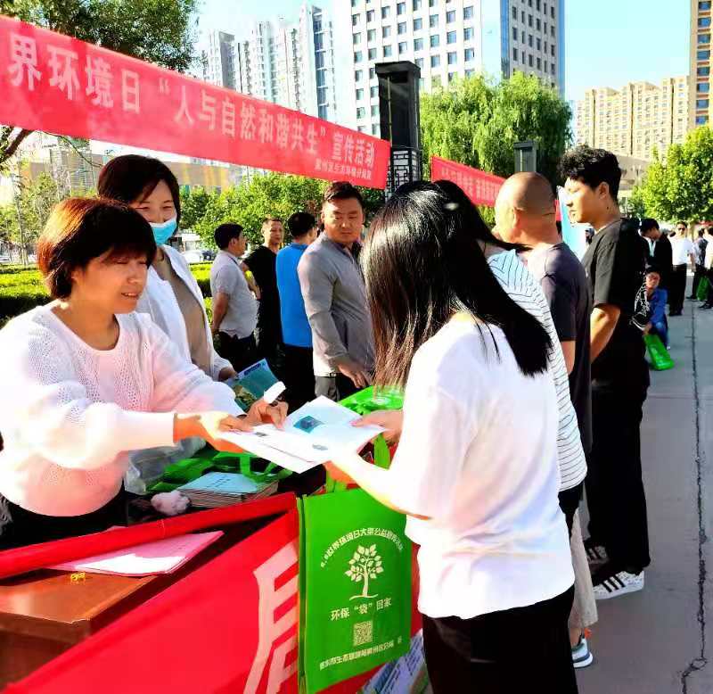 同時,共青團冀州區委、冀州區公安局、冀州區交警大隊等多個部門分別攜帶宣傳展板、宣傳資料在冀寶齋博覽館東、西兩側,開展環保宣傳活動。