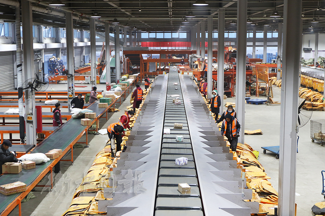 棗強縣肖張鎮電商物流園九號倉內的圓通自動化交叉帶分揀設備