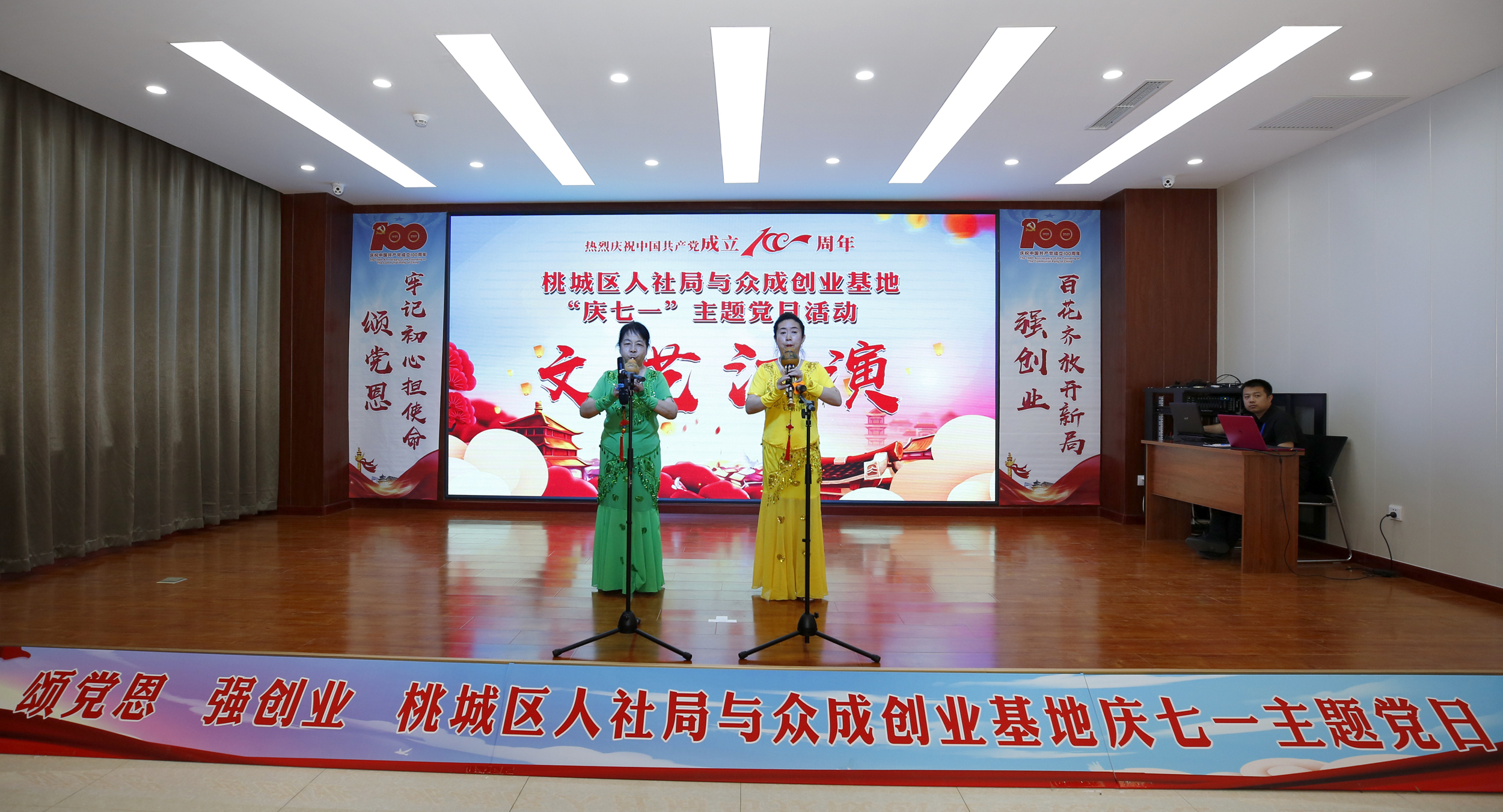在“慶七一”主題黨日活動中,現(xiàn)場所有黨員面對鮮艷的黨旗重溫入黨誓詞,桃城區(qū)人社局、桃城區(qū)就業(yè)服務(wù)中心以及創(chuàng)業(yè)基地的創(chuàng)客還為大家準(zhǔn)備了豐富多彩的文藝節(jié)目,大合唱《沒有共產(chǎn)黨就沒有新中國》、獨唱《再唱山歌給黨聽》《我愛你中國》、現(xiàn)代京劇《紅燈記》選段、河北梆子《自從來了共產(chǎn)黨》等節(jié)目精彩迭出,贏得了現(xiàn)場觀眾陣陣掌聲。
