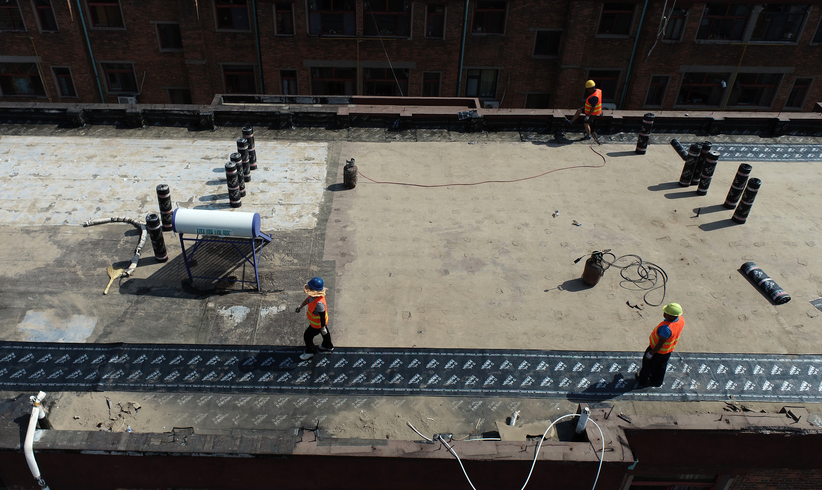 故城縣建行家屬院樓頂防水作業(yè)正在緊張進(jìn)行。