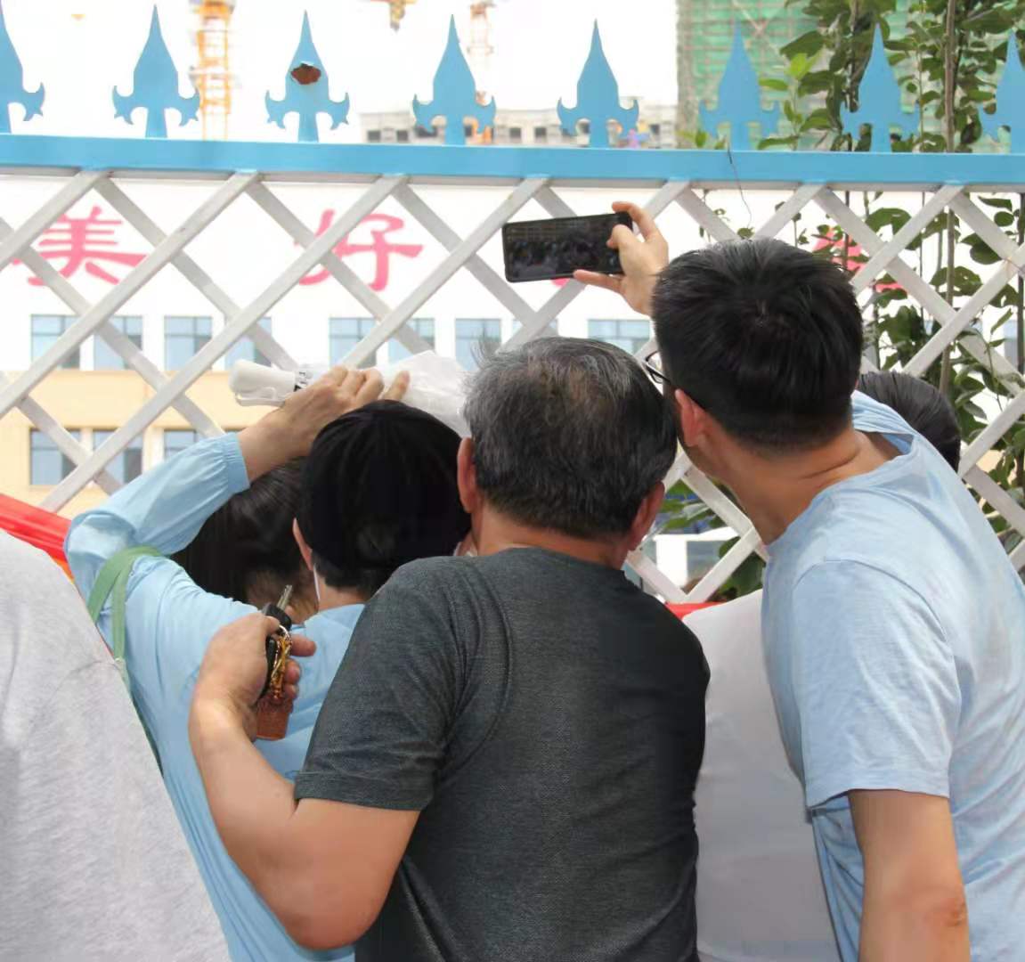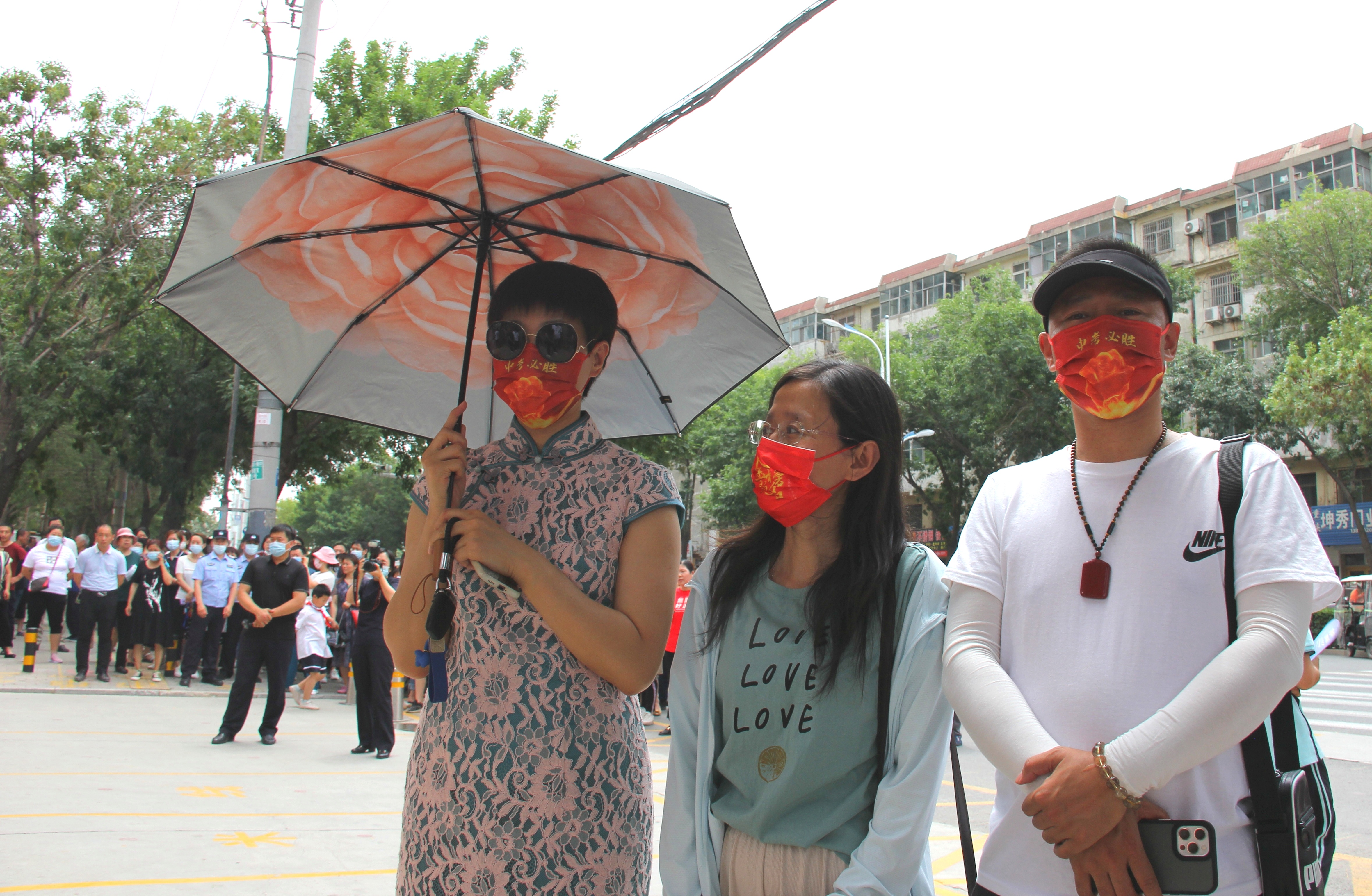 送考大軍中,家長們的行頭可謂五花八門。為圖個好彩頭,市民王先生和愛人雙雙戴上了“中考必勝”“金榜題名”的紅口罩,為孩子加油。市民張女士則穿上了一件鮮紅的T恤,胸前“無限好運”的白色字樣格外醒目,“這個時候,家長唯一能做的,就是在考場外暗自為孩子鼓勁、喝彩!”還有家長穿了一身旗袍,“這三年,孩子很辛苦,家長陪伴也很苦。希望孩子旗開得勝,能夠考上好學(xué)校,也希望我的付出能有收獲!”