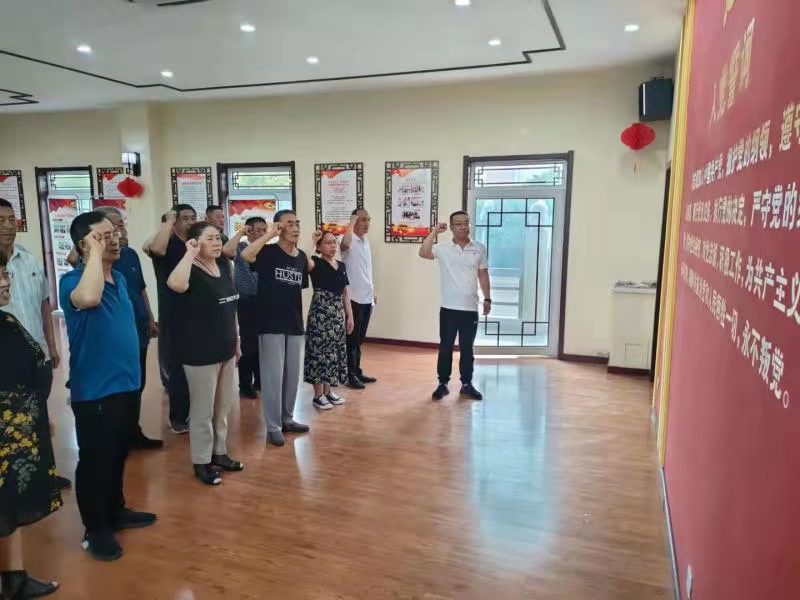 “我志愿加入中國(guó)共產(chǎn)黨,擁護(hù)黨的綱領(lǐng)……”參觀展覽前,社區(qū)黨員面向黨旗,高舉右拳,重溫入黨誓詞。一句句鏗鏘有力的誓詞,表達(dá)著大家不忘初心、牢記使命、繼續(xù)奮斗的信心和決心。