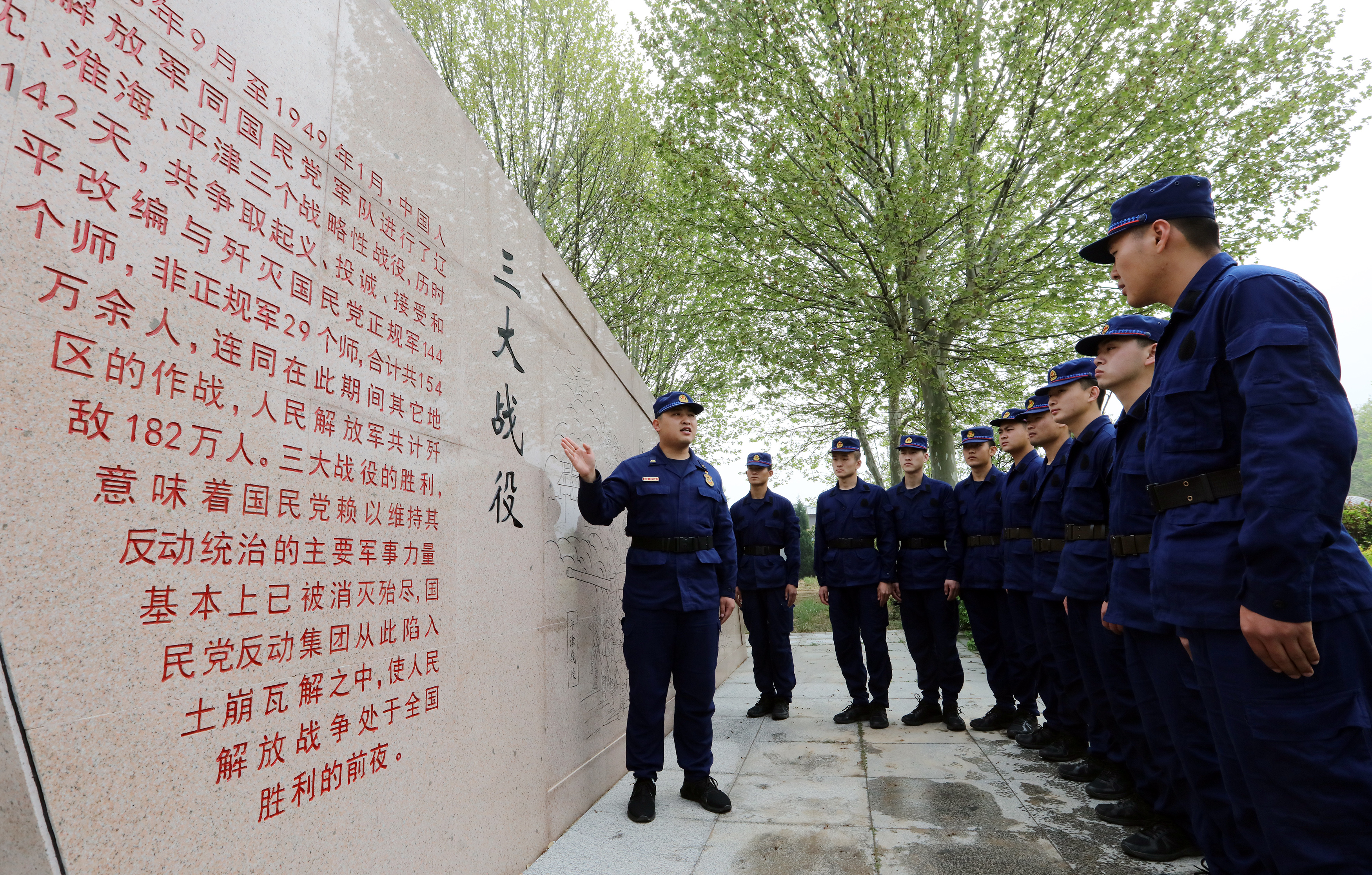 義務守墓王志杰人正在給觀參者講解回民支隊英勇往事。