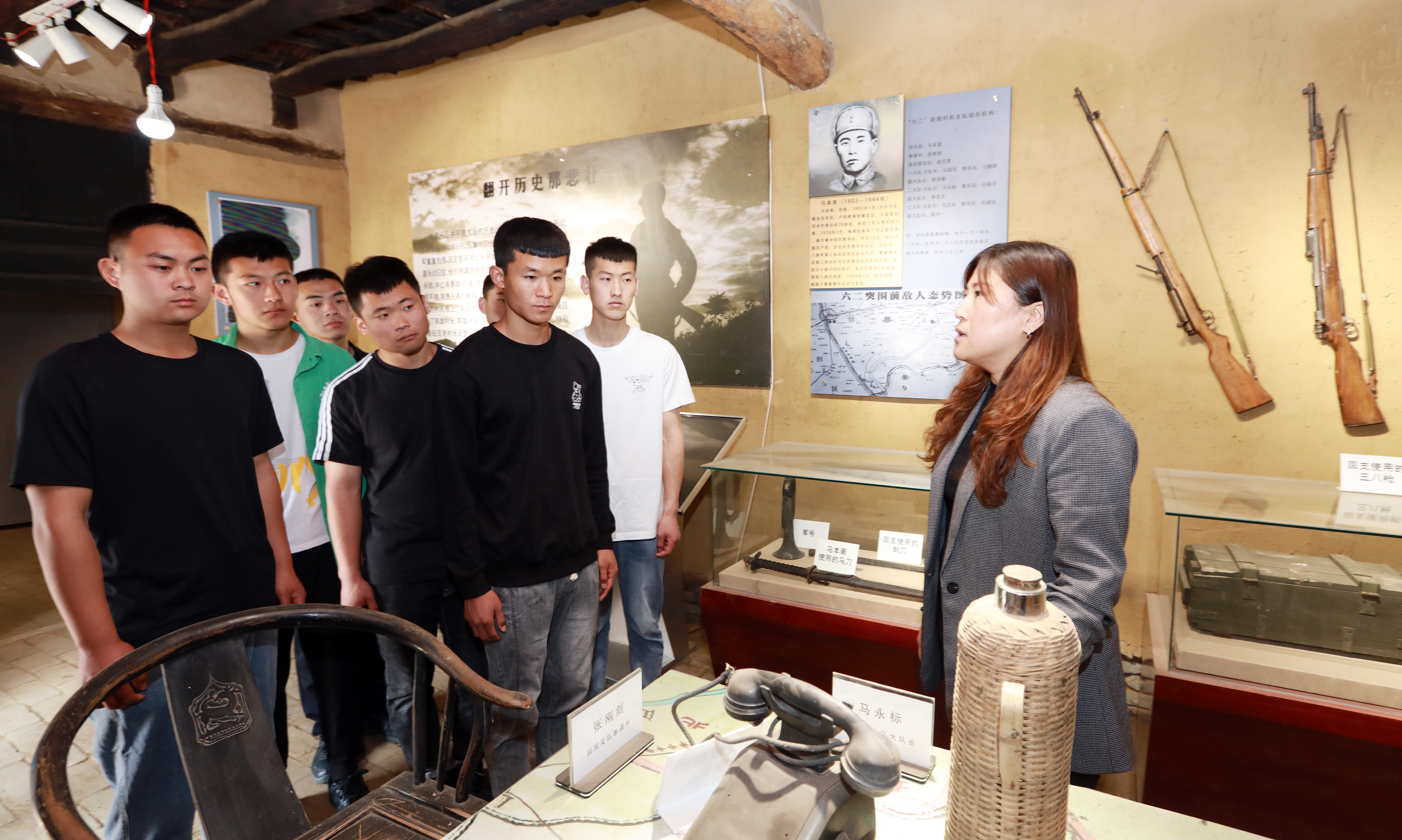 游人在紀莊村作戰指揮部舊址聽講解員講述往事。