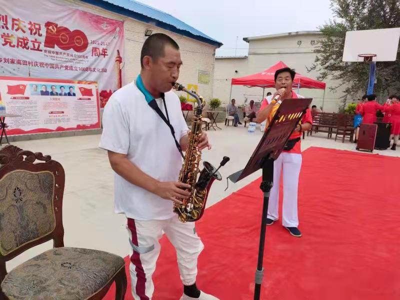 喜慶的鑼鼓敲起來,歡快的舞蹈跳起來。7月1日,衡水市濱湖新區劉家南田村的文化廣場上熱鬧非凡,全村老少齊聚一堂,表演了自己編排的架鼓、舞蹈、樂器演奏等節目,共同慶祝中國共產黨成立100周年。