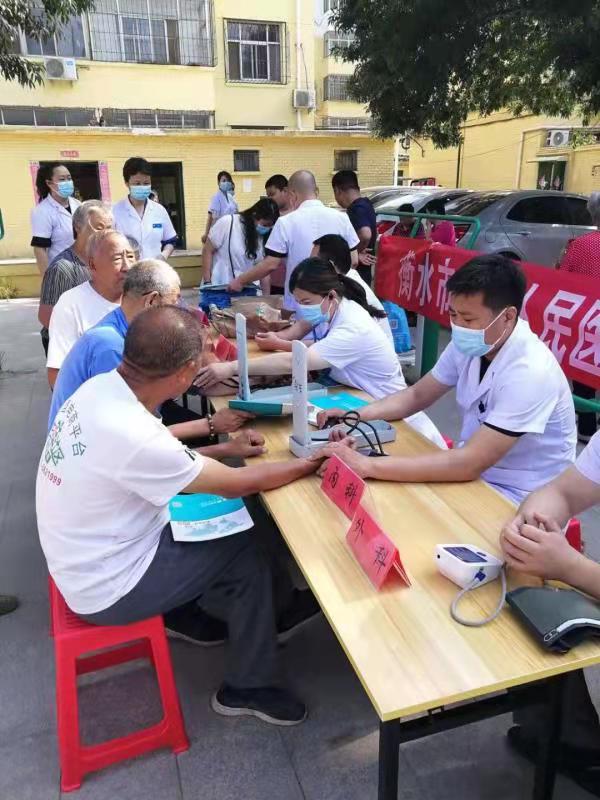 7月9日,衡水市桃城區路北街道孔穎達公園社區邀請衡水市第五人民醫院內科、外科、骨科、婦科等科室的多名醫務人員來到煤礦小區,為這里的群眾進行義診。