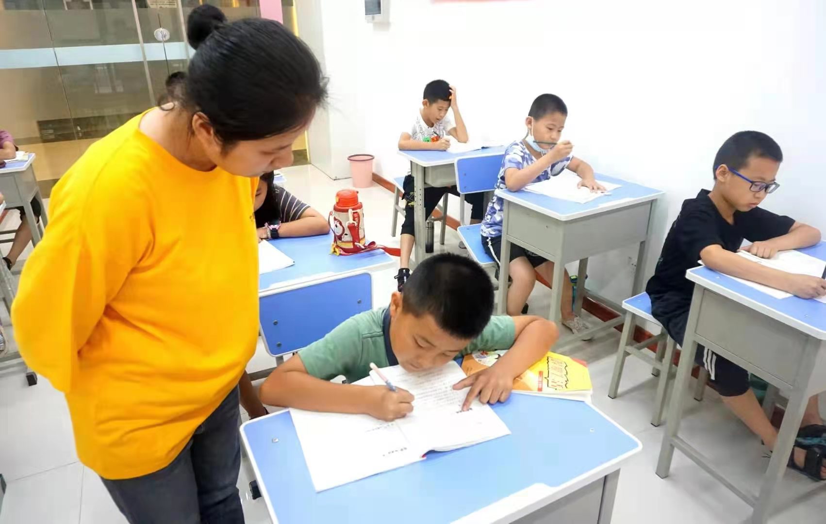 在愛心公益暑托班課堂上,整齊擺放著課桌椅,小學生們安靜地做著功課,遇到有孩子提問,老師就會上前輕聲解答。七色堇培優負責人崔存介紹,在這里上課的學生除了市區雙職工子女,還有隔代撫養子女、進城務工人員子女以及家庭生活困難的孩子。