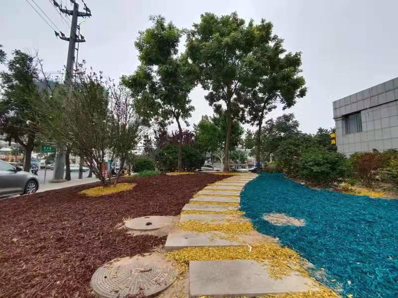 在樹木生長過程中或林地、綠地管護中產生的枯枝落葉等植物殘體,被稱為園林綠化廢棄物,把這些園林廢棄物進行有機處理和著色之后就變成了有機覆蓋物,鋪在綠地或樹穴中,不僅美觀,同時還具有調節土壤溫度、保持土壤水分、抑制雜草、增加土壤有機質等作用,實現了園林廢棄物資源化循環利用。