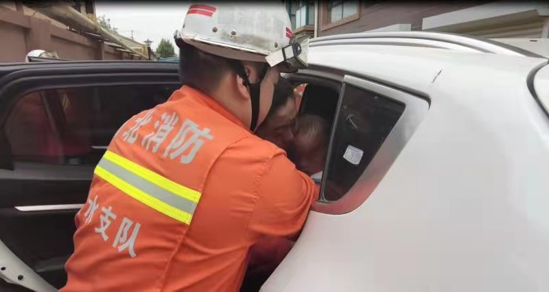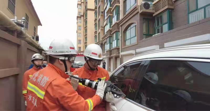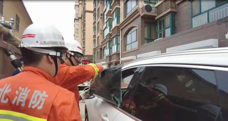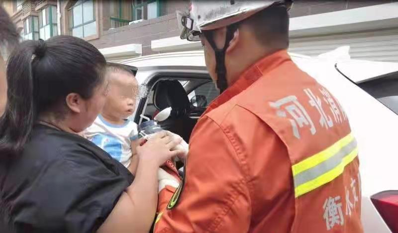 7月14日9時許,衡水市武強縣某小區一私家車內,一名一歲幼童被反鎖車內,其父母在自救無果情況下,撥打119求助。武強縣消防救援大隊接到報警后,迅速出動2車12人趕往現場處置。
