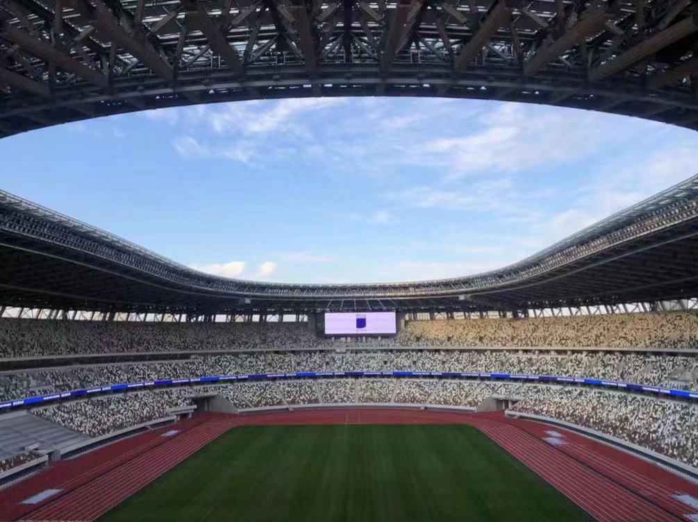 場館觀眾席分為三層,采用坡度逐漸變陡的“漏斗形”設計,即使坐在距離比賽場地較遠的上層觀眾席,也不會影響觀賽體驗。此外,為殘障人士考慮的“無障礙設計”也是新國立競技場的特點之一。場館利用觀眾席背面的空間,使電梯直通上層看臺,在觀眾席的中間位置還設置了輪椅席。觀眾席頗有特色,6萬個座椅分為不同顏色。設計師特意將深綠、淺綠、茶色、白色、灰色五種顏色的座椅打亂,分散在各處,陽光從屋頂照射下來,如同灑進森林,斑駁陸離。據說,這些不同顏色座椅的擺放看似隨意、毫無規律,卻是特別設計的,每個位置都不可改變。