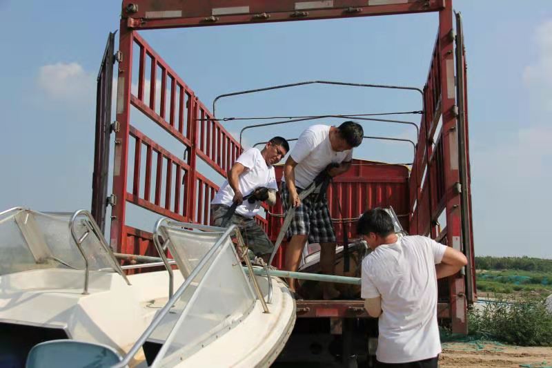 7月26日下午,頂著炎炎烈日,衡水市鶴鳴養(yǎng)殖有限公司7名志愿者費了九牛二虎之力,將公司兩艘快艇搬運上貨車,隨即向河南進發(fā),轉移當?shù)厥転娜罕姟?/p>