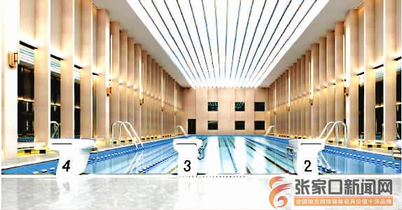采用對稱序列組合,利用巖石質樸的自然紋路和光與鏡子的作用,體現出建筑的對稱美感,頂部模擬藍天白云,借助鏡子的反射及近深關系,將游泳館空間延伸,同時將水和天空連成一片。