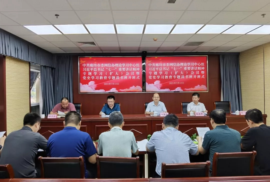7月12日,網信辦召開理論學習中心組專題學習(擴大)會議暨網信辦黨史學習教育專題讀書班開班式,深入學習領會習近平總書記在慶祝中國共產黨成立100周年大會上的重要講話精神,印發了《中共廊坊市委網信辦關于舉辦黨史學習教育專題讀書班實施方案》。會議要求網信辦全體干部職工要嚴肅學習紀律、保證學習時間、提高學習效率,發揚馬克思主義優良學風,學出堅強黨性,學出信仰擔當,確保此次讀書班有力有序有效開展。7月12日,網信辦召開理論學習中心組專題學習(擴大)會議暨網信辦黨史學習教育專題讀書班開班式,深入學習領會習近平總書記在慶祝中國共產黨成立100周年大會上的重要講話精神,印發了《中共廊坊市委網信辦關于舉辦黨史學習教育專題讀書班實施方案》。會議要求網信辦全體干部職工要嚴肅學習紀律、保證學習時間、提高學習效率,發揚馬克思主義優良學風,學出堅強黨性,學出信仰擔當,確保此次讀書班有力有序有效開展。