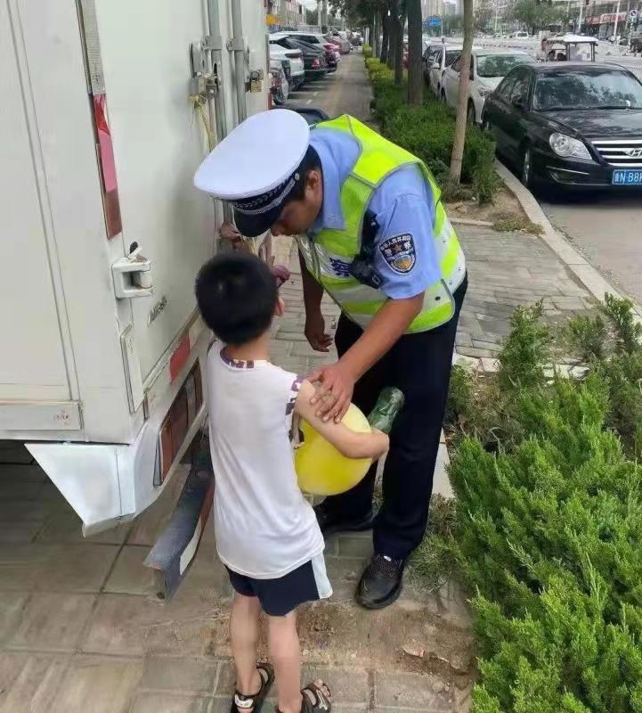 當天下午,衡水交警支隊鐵騎大隊一中隊民警胡越在和平路寶云街路口巡邏時,接到了熱心市民的求助,稱路遇一哭泣的小男孩兒,疑似與家人走散。