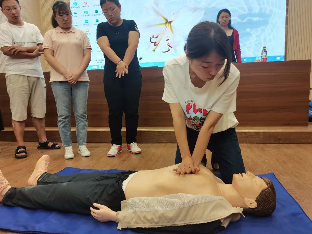 培訓現場,他們專門邀請深州市醫院急診科主任就骨折、外傷處理、心肺復蘇等醫學知識進行了講解,如運動受傷后如何處理、外傷出血緊急包扎、骨折固定和搬運,以及急救中如何調整體位、打開氣道、判斷呼吸、胸外按壓、人工呼吸等應急救護技能,并與護理人員進行了現場操作演練。