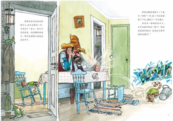 一個(gè)關(guān)鍵動(dòng)作之后,圖中的各種人、事、物會(huì)隨之發(fā)生了變化。風(fēng)暴過(guò)后,海邊的一切發(fā)生什么變化?吃飯之后,餐桌上的食物發(fā)生了什么變化,以及哪盤菜原樣未動(dòng)?一夜過(guò)后,哪些消失了,哪些現(xiàn)出了原形?每個(gè)頁(yè)面都有一個(gè)特定主題和很多妙趣橫生。