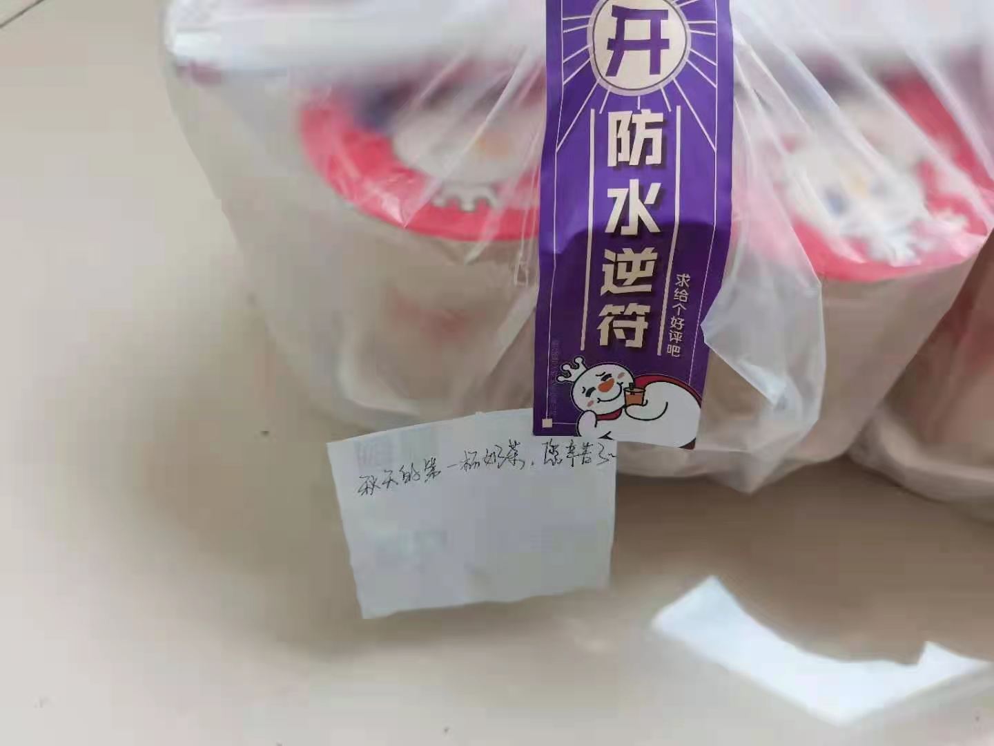 外賣奶茶一共15杯,包裝袋上附著一張紙條:“秋天的第一杯奶茶,您辛苦了!”