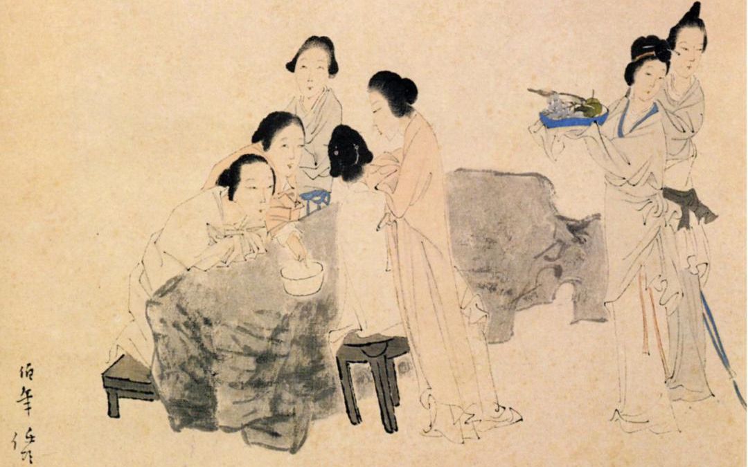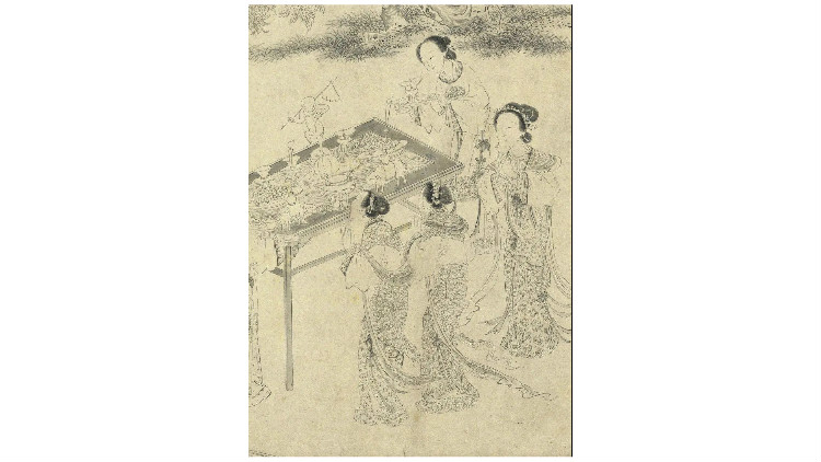 清 陳枚《月曼清游圖冊》之“桐蔭乞巧”