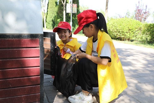 小志愿者走上街頭清理衛生死角。冀州區委宣傳部供圖